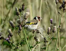 正在吃絲路薊種子的金翅雀。