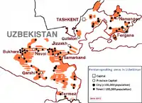 | 花拉子模州 | 烏爾根奇 | 6,300 | 1,200,000 | 13 |