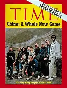 中美两国乒乓球队互访轰动了国际舆论,成为举世瞩目的重大事件,被媒体称为“乒乓外交”。从此结束了中美两国20多年来人员交往隔绝的局面,使中美和解随即取得历史性突破[5]。1972年2月21日,尼克松访問中國大陸,中美关系解凍,開啟了中美關係的大門。