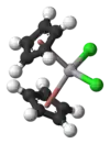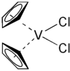 二氯化二茂钒 是一种有机钒化合物 ,化学式(η5-C5H5)2VCl2 (一般简称 Cp2VCl2)。它的结构类似二氯二茂钛,不过钒(IV) 代替了钛(IV)。这个化合物有一个未成对的电子,因此 Cp2VCl2 是 顺磁性的。 二氯化二茂钒是各种双(环戊二烯基)钒(IV)化合物的合适前体。