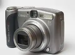 ISO 1600, titanium case, face detection, first to use DIGIC III OS, Denim Blue, Steel Grey, Sepia, Pink[112] |
