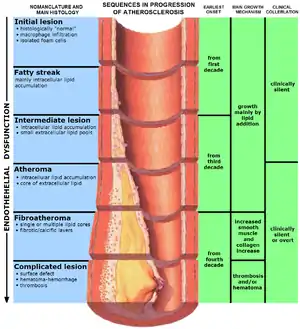 动脉粥样硬化(英語:)是一種是粥樣斑塊沉積在血管壁並造成動脈狹窄的疾病[7]。動脈粥樣硬化的早期通常沒有症狀[1],嚴重時視其影響的動脈所在,可能造成冠狀動脈疾病、中風、周邊動脈疾病以及腎功能衰竭[1]。一般而言,動脈粥樣硬化的相關症狀在中年之後才會出現[3]。
