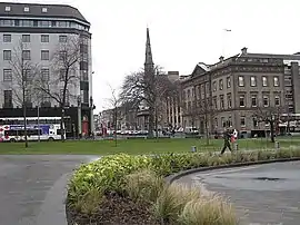 在广场东侧矗立着登打士大厦,由威廉·钱伯斯为劳伦斯·登打士爵士建于1772年到1774年。此处曾经预留给圣安得烈教堂。1825年,登打士大厦成为苏格兰皇家银行总部[4]。登打士大厦的帕拉第奥立面和大堂华丽的天花板出现在该银行发行的纸币上[5][6]。