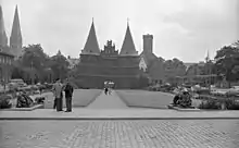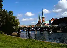吕贝克的教堂尖顶,前方的是圣彼得教堂,后面的属于圣玛丽亚教堂