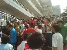- 宜昌市外国语学校被市政府高价卖出,高中学生集体站立在操场上拉横幅,抗议示威,并升国旗、校旗