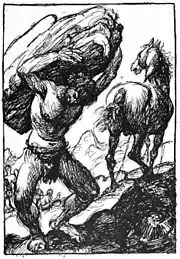 『世界之環』(Heimskringla)記載丹麥國王欲征服冰島,派遣魔術師至冰島的顛末。魔術師在冰島的4個地區被鳥、龍、公牛、巨人撃退,丹麥國王因此放棄[6][7][8]。其中的巨人是山巨人或是石巨人。