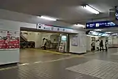 在貫通東西方,在此站地底通過的行人隧道於1985年(昭和60年)建成啟用,該行人隧道連接車站閘口。廁所設在閘內和閘外共2處。設有無障礙設施,在行人隧道和各月台之間設有升降機連接,沒有電梯。