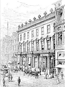 新俱乐部成立于1787年2月1日,为一个绅士俱乐部, 它是苏格兰最古老的私人会员俱乐部。俱乐部最初设于王子街东端莎士比亚广场的贝勒酒馆,从1809年到1837年设于圣安得鲁广场3号,1837年5月15日迁入王子街84-85号的专用建筑。该建筑由威廉·伯恩重新设计,是爱丁堡新城建成后王子街第一座拆除重建的新建筑[1]。1859年大卫·布莱斯又进行了扩建。1953年新俱乐部与大学俱乐部合并。