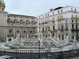 1573年,原本为佛罗伦萨圣克莱门特宫修建的喷泉,决定放置在巴勒莫的这个地点。
