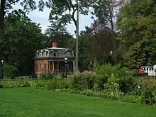 建于1833 年的行政楼由Minard Lafever设计,是一座“宏伟的”希腊复兴建筑,有宏伟的爱奥尼亚门廊,是这位建筑师现存最古老的作品。[16]它于1884年重新装修,拥有“一个令人眼花缭乱的走廊,有彩色玻璃和天花板壁画”,在1990年代修复。[10]