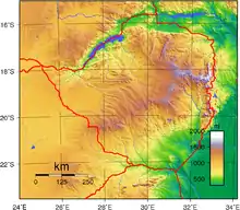 | 海拔极端 | 最低点:Runde河与萨韦河交汇处,162米 最高点:伊尼扬加尼山,2,592米 |