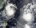 - 同時有兩個颱風的海上颱風警報並存: