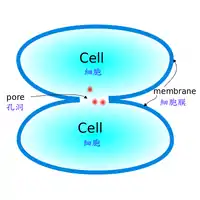 孔洞生成溶細胞素(Pore forming cytolysins,縮寫PFC)佔到了膜破壞性溶細胞素的65%[7]。第一種被發現的孔洞生成溶細胞素是能夠插入紅細胞膜的C5-C9複合物。該溶細胞素是在1972年由曼弗雷德·邁耶發現的[11]。孔洞生成溶細胞素的來源很廣——細菌、真菌,乃至植物[12]。通常情況下,孔洞生成溶細胞素是通過在靶細胞的膜上造出孔洞起效的。值得注意的是,孔洞可能有許多種結構。比如說,孔蛋白狀的結構能允許特定大小的分子通過。電場在孔洞兩端分佈不均,從而使得某些分子能夠通過孔洞[13]。葡萄球菌α溶血素(staphylococcal α-hemolysin)就是通過上述機理起效的[14]。細胞融合也可以造出孔洞——在鈣離子(Ca2+)的控制下,囊泡的融合會通過脂蛋白形成充水孔[15]。