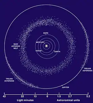 特洛伊群小行星是與木星共用軌道,一起繞著太陽運行的一大群小行星。從固定在木星上的座標系統來看,他們是在所謂的拉格朗日點中穩定的兩個點,分別位於木星軌道前方(L4)和後方(L5)60度的位置上。[1]