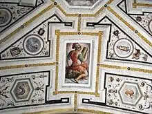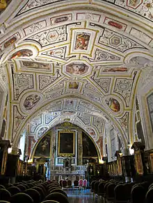 瓦萨里祭衣间得名于乔尔乔·瓦萨里 他在1545年画了这里的拱顶壁画。由于1542-44年他在罗马的作品,以及迅速完成委托的能力,他的名气已经达到了那不勒斯。他在坎帕尼亚的时光很短,从1544年至1545年,但很忙碌,把托斯卡纳风格主义(以前只到达罗马)带到了那不勒斯。他从总督佩德罗·达托莱多、贵族和修道院得到了好几个订单,第一个订单是装饰橄榄山圣母修道院的旧墓地。