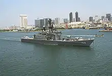 | 武器裝備 | 海麻雀防空飛彈 ASROC Mk 112反潛火箭 2x 5 吋(127 mm/54口徑)Mk42艦砲 2具20mm方陣快砲 12.7mm機槍 2xMk 32型水面船艦魚雷管3連裝 (Mk 46型魚雷) |