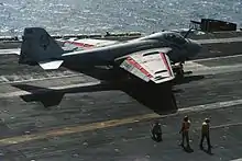 襟翼正在下垂而要降落的A-6闖入者式攻擊機