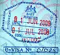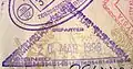 喀拉蚩機場的多顏色入境印章。