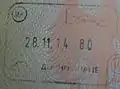 抵達和離開法國海外領土如法屬波利尼西亞、新喀裡多尼亞以及瓦利斯和富圖納時,法國邊防警察根據以下規則標記旅行者的旅行證件:[12][13][14][15]