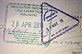 印度使用不同的護照印章顏色以快速區別旅客移動方向,入境是藍色,出境是紅色。印章可能是方形、圓形或橢圓形。