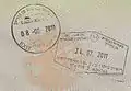 德國護照上的本-古里安國際機場入、出境印章(入境:右;出境:左)。