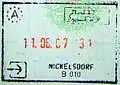 奧地利-匈牙利邊界地帶尼克爾斯多夫(奧地利)的鐵路旅行入境印章,當時匈牙利尚未加入伸根區。