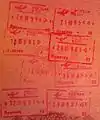 - 新界各口岸(沙頭角管制站、文錦渡管制站、羅湖管制站、落馬洲管制站、落馬洲支線管制站及深圳灣管制站等由陸路,屯門渡輪碼頭管制站由海路)使用紅色墨水印章。