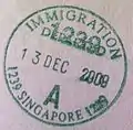 馬來西亞護照上經由大士關卡進入新加坡的入境印章。