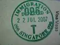 舊式泰國護照上的樟宜機場入境印章。