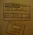 英國護照印章是黑色墨水,並帶有入境點的名稱,以及移民官的身份證號碼。如果旅行者是非持有入境許可的非簽證國民,則護照印章包括允許入境的許可條件。