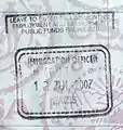 一般入境章(入境時提供給臨時簽證持有人)