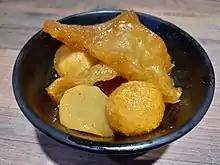![]() 一碗咖喱三寶,有豬皮、蘿蔔及魚蛋。 | |