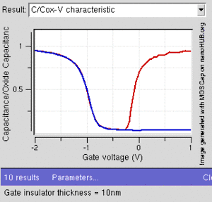 當VGB夠強時,接近閘極端的電子濃度會超過電洞。這個在p-type半導體中,電子濃度(帶負電荷)超過電洞(帶正電荷)濃度的區域,便是所謂的反轉層(inversion layer),如C-V曲线右侧所示。