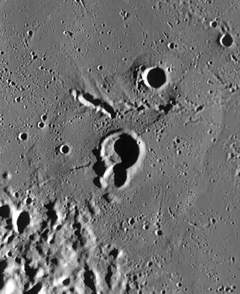 月球勘测轨道飞行器拍摄的卫星坑"阿尔希塔斯 G"(顶部)