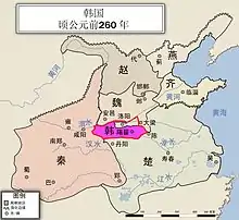 - 前262年:秦伐韓,拔野王。上黨路絕,韩献上黨与赵。
