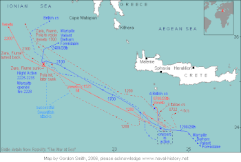 3月27日,普賴德哈姆·威派爾海軍中將率領巡洋艦艾傑克斯號、格拉斯哥號、俄里翁號和柏斯號及數艘驅逐艦由希臘海域向克里特島南部航行,同一天,康寧漢上將率領航空母艦可畏號、戰列艦巴漢號、英勇號及厭戰號從亞歷山卓港出發會合巡洋艦隊。