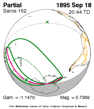 ![]() 1895年9月18日日偏食路徑圖 | |