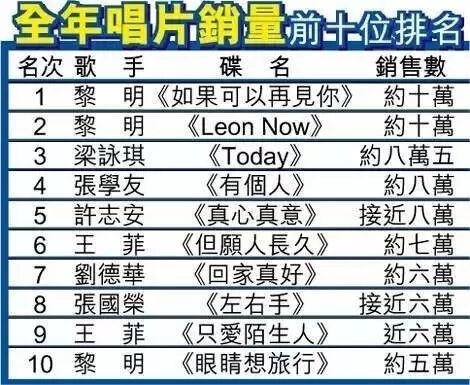 | 年份 | 歌曲 | 最高排名 | |||||||