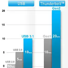 - 雖然向下相容USB 2.0/1.0,但如果要得到20Gb/s的傳輸速度仍需在主機、目標端同時具備對應的晶片才能達成。