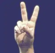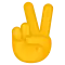 V字手勢(Emoji:✌),手勢的做法除食指及中指豎起外其他手指向手心彎曲。通常,手心向內或外並無區別,但手心向內的手勢在某些西方國家有侮辱含義。